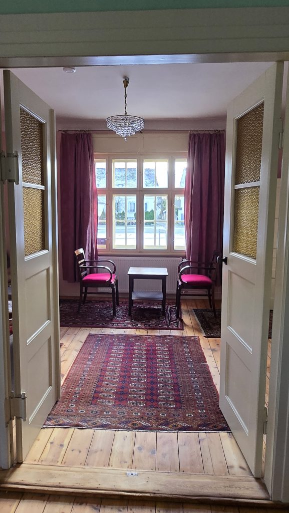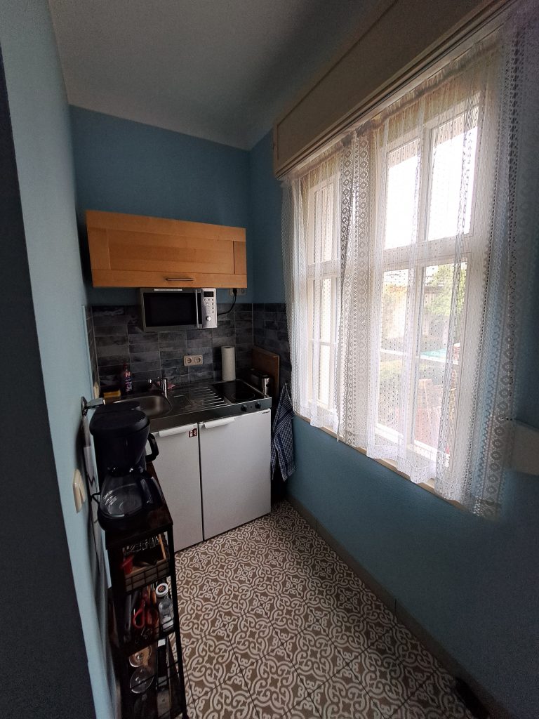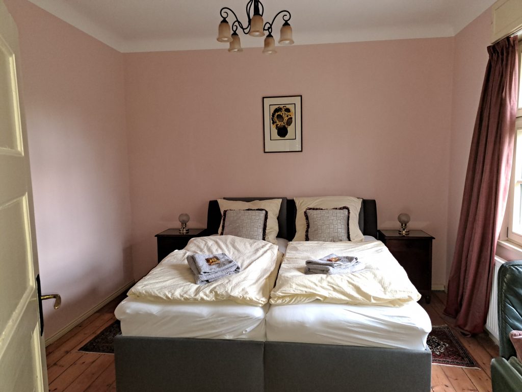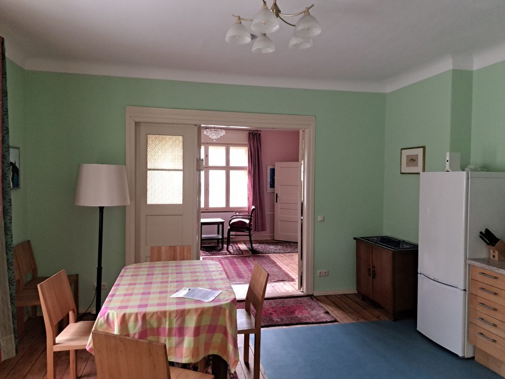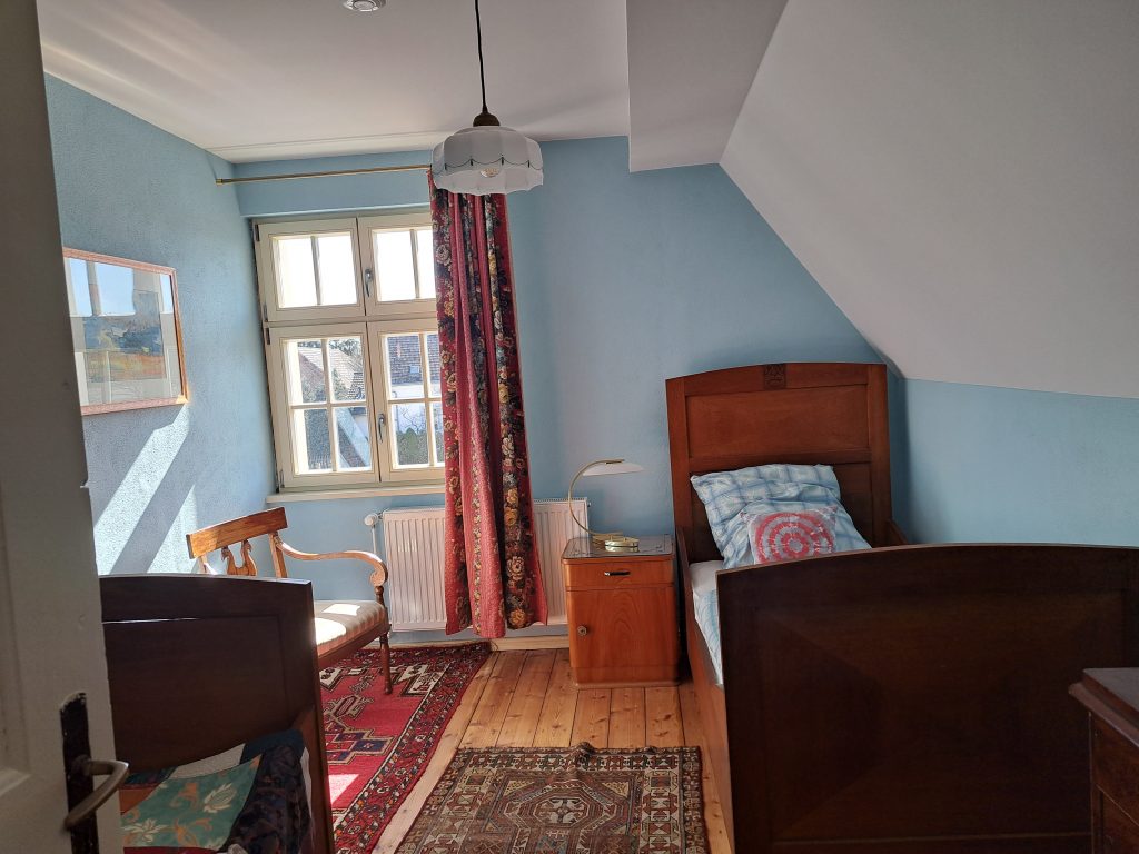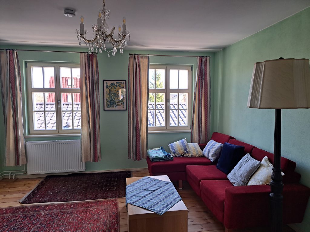 Unser Ziel war dabei, möglichst viel der alten Baustubstanz und die alten Raumeinteilungen weitestgehend zu erhalten. Die Wohnungen sind in einer Mischung aus modernen und bauzeitlichen Möbeln eingerichtet. Sie sind in fröhlichen Farben gestrichen und mit viel Liebe zum Detail eingerichtet. Es ist schon jetzt alles da, was man braucht und weitere Verschönerungen wie Bilder und – in Maßen – Deko werden stetig ergänzt, wenn wir passendes finden.